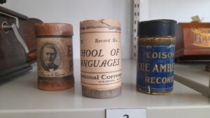 A virada ocorreu em 1877, quando Thomas Edison apresentou o fonógrafo, primeiro dispositivo capaz de gravar e reproduzir áudio. O aparelho registrava vibrações sonoras em cilindros rotativos por meio de uma agulha conectada a uma membrana. Os primeiros cilindros, feitos de folha de estanho, eram frágeis e podiam ser reproduzidos apenas algumas vezes, mas inauguraram a possibilidade de ouvir novamente um som gravado. (Figura 1)